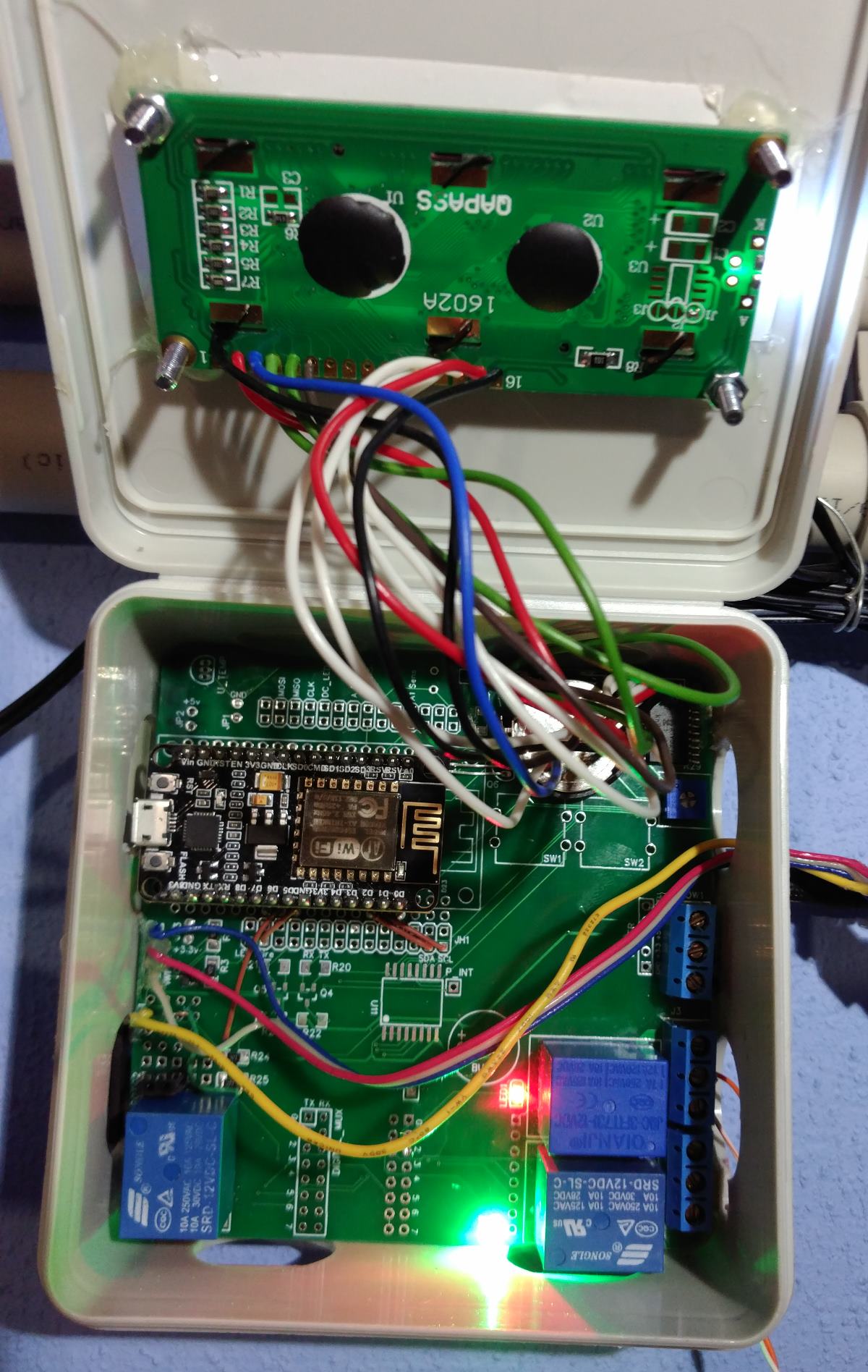 - Простейший 2-строчный LCD дисплей для отображения текущих значений датчиков и состояния прибора и реле.