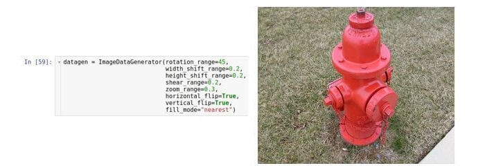 Инициируем ImageDataGenerator со всеми доступными параметрами и проверим на изображении красного гидранта.