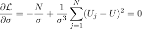 То есть, имея N заданных величин Uj, наша задача найти такой параметр, U который максимизирует значение правдоподобия. Правдоподобие (я сразу беру от него логарифм) можно записать следующим образом: