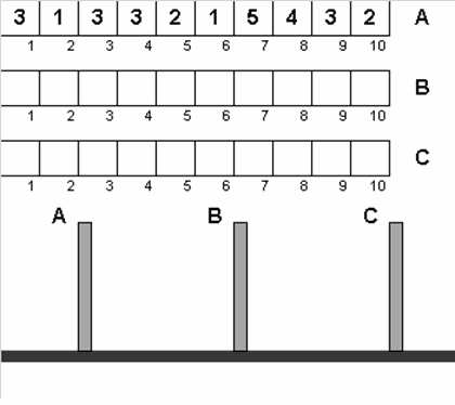top(A), top(С) — размер верхнего диска А или С. Если столбик пуст, то этот размер = MaxInt.