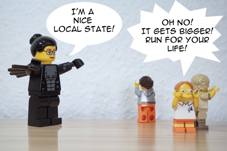 В конце концов, единственное различие между локальными и глобальными состояниями — это их области видимости. Они ограничены у локальных состояний, а для глобальных доступно всё приложение. Однако вы можете столкнуться с проблемами, характерными для глобальных состояний, если используете состояния локальные. Почему?