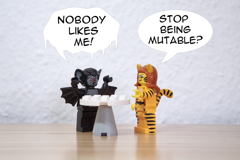 Причиной всех описанных выше проблем являются сами состояния, локальные или глобальные, и их изменяемость. Если всё будет неизменяемым, то в большинстве приложений проблемы будут возникать реже. Но очевидно, что нам нужно менять состояния, чтобы приложения работали как нужно. Поэтому помните, что всегда лучше всеми силами избегать изменяемости!