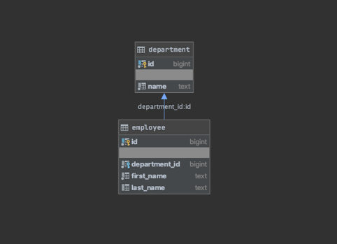 Наше приложение будет состоять из двух таблиц department и employee, которые связаны отношением «один ко многим».