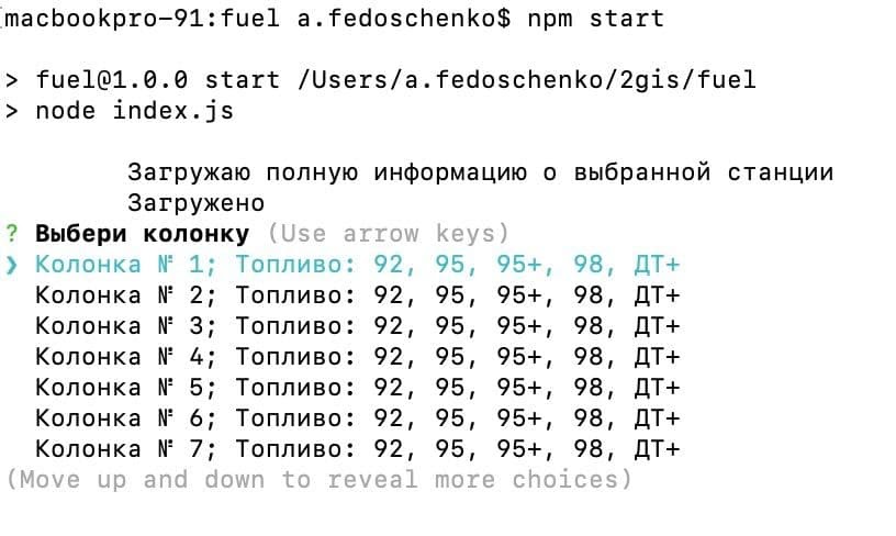 За час до этого закрываем ноутбуки и стартуем из офиса в центре города. Скрипт отрабатывает нормально: даёт выбрать заправочную станцию из списка, затем выбрать колонку — узнать, какое топливо на ней, и инициировать пролив бензина либо по литражу, либо по сумме. Но сработает ли всё на реальной колонке — пока не знает никто. Это нам и предстоит проверить.