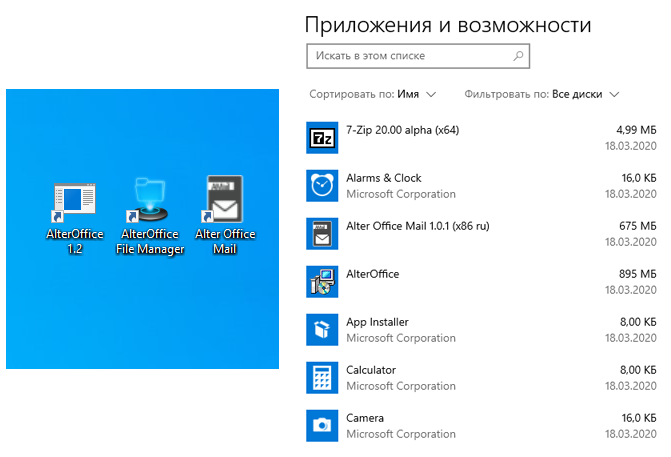 В списке установленных приложений появляются две записи о приложениях Alter Office Mail 1.0.1 (x86 ru) и AlterOffice 1.2.1.1. Обратите внимание на написание бренда: в одном случае оно почему-то пишется через пробел, в другом — слитно. Интересно, какое написание правильное? Странно, что еще и сами названия не изменили по методу «абибас», который исповедуют китайские производители дешевой одежды и электроники.