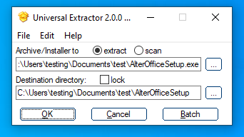 Перейдем ко второму файлу из пакета. Как я уже сказал, это самораспаковывающийся архив. Если его запускает основной инсталлятор, то при распаковке архива все файлы будут сложены в папку с AlterOffice, также будут созданы ярлыки на рабочем столе и в главном меню. Если же его просто запустить, то все эти файлы попадут в текущую папку. Давайте распакуем в случайный временный каталог и посмотрим на результат.