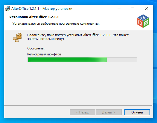 Также я обратил внимание, что при установке AlterOffice дополнительно ставятся какие-то шрифты. Если присмотреться, то можно увидеть такое сообщение в окошке инсталлятора: