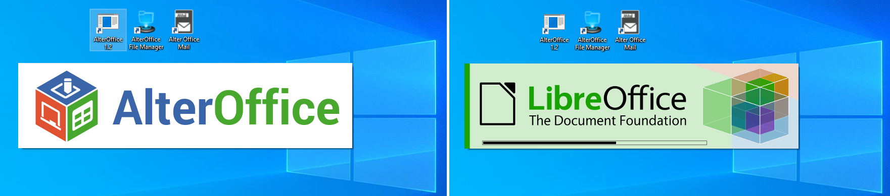 Сравнение каталогов и файлов редакторов AlterOffice 1.2 и LibreOffice 6.2 показывает, что практически все файлы из состава редакторов AlterOffice 1.2 совпадают по именам с файлами LibreOffice. Установленные приложения Atext, Acell, Aconcept, Agraph полностью идентичны Writer, Calc, Draw и Express. Единственные уникальные файлы — картинки с логотипами.