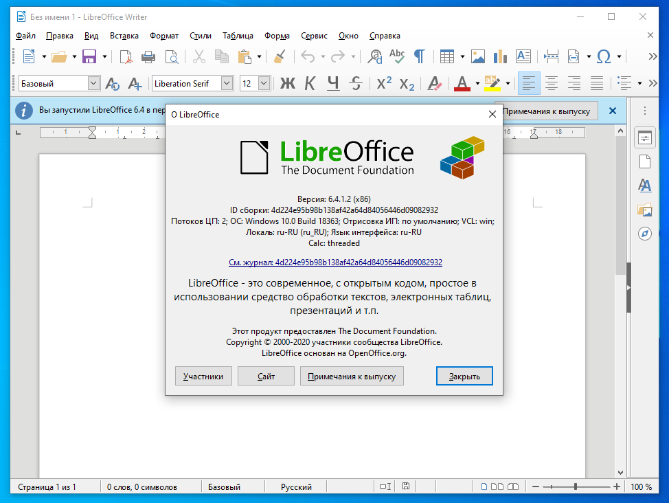 Красиво? А как вы думаете, что будет, если нажать в кнопку «Участники»? В случае с LibreOffice откроется вот эта ссылка, где перечислены все создатели продукта. А вот из «программы» AlterOffice — только сайт alteroffice.ru.