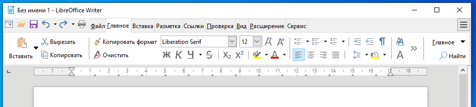 Соответственно, пара кликов и LibreOffice начинает выглядеть как-то так: