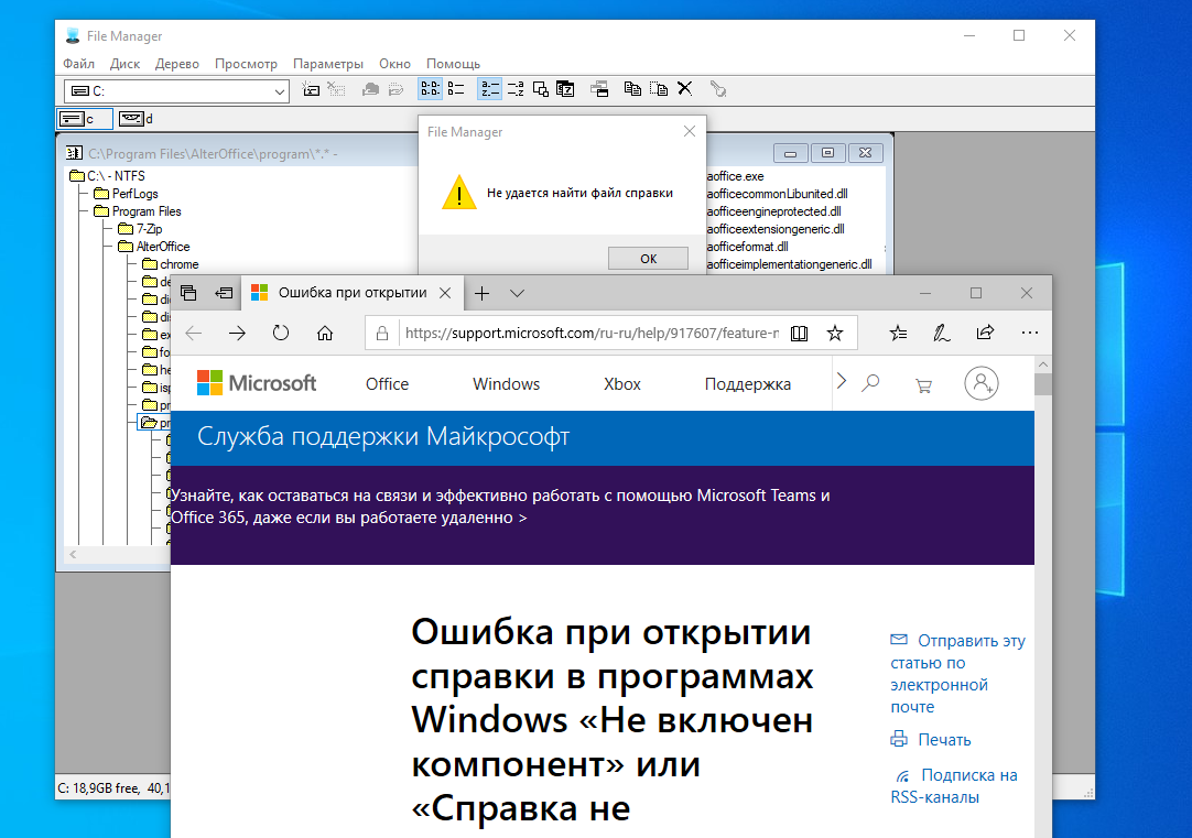 «Ручное» решение проблемы выглядит так: надо переименовать в системной папке Windows имена файлов библиотек, поскольку в последнем дистрибутиве Microsoft Visual C++ устанавливаются файлы с названием [clr0400] в конце, и программа AlterOffice FileManager их не видит. Как позже удалось выяснить, эти библиотеки по‑умолчанию идут в комплекте с почтовым клиентом — про него чуть ниже.
