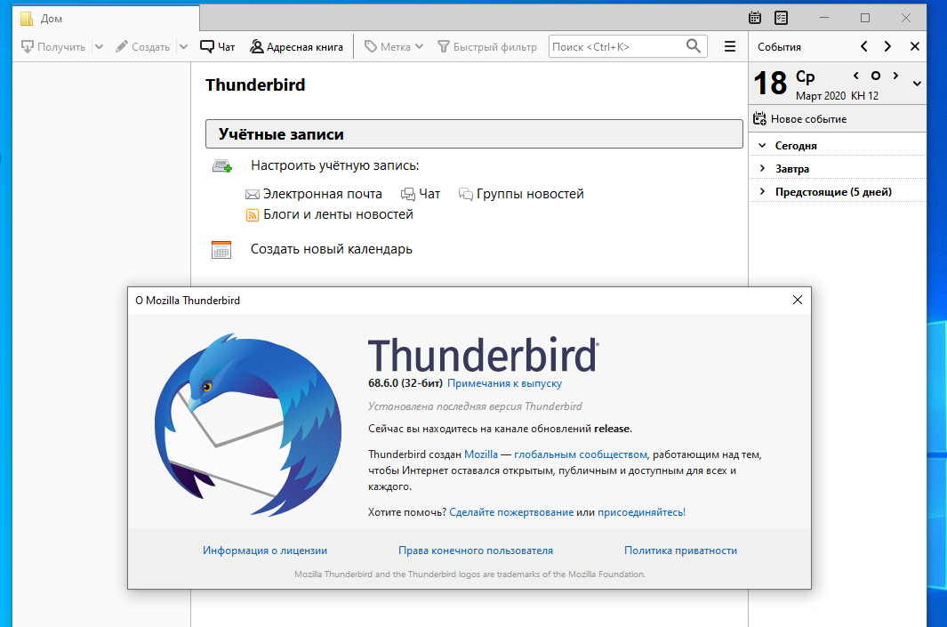 Дабы окончательно развеять все сомнения, покажу интерфейс оригинального Thunderbird: