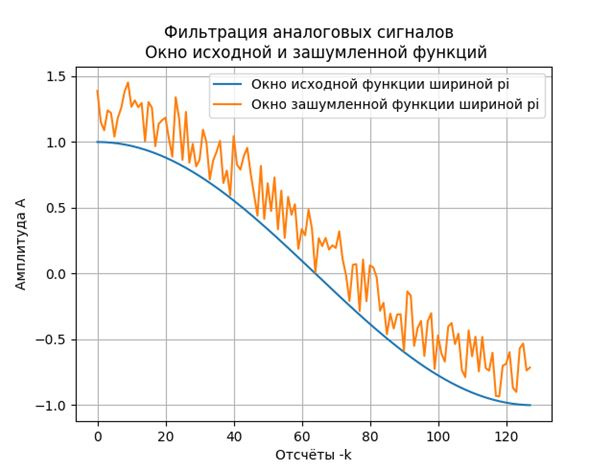 plt.title("Фильтрация аналоговых сигналов n Окно исходной и зашумленной функций")