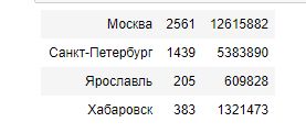 Например, у нас есть данные по площадям городов и численности населения. Выведем их на экран в «традиционном виде»: