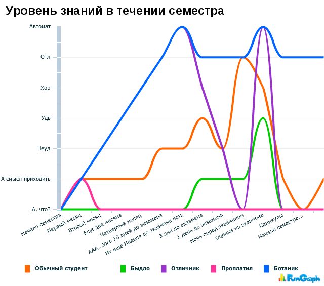 В качестве примера, взял шуточный график про студентов, который я нашёл вот тут.