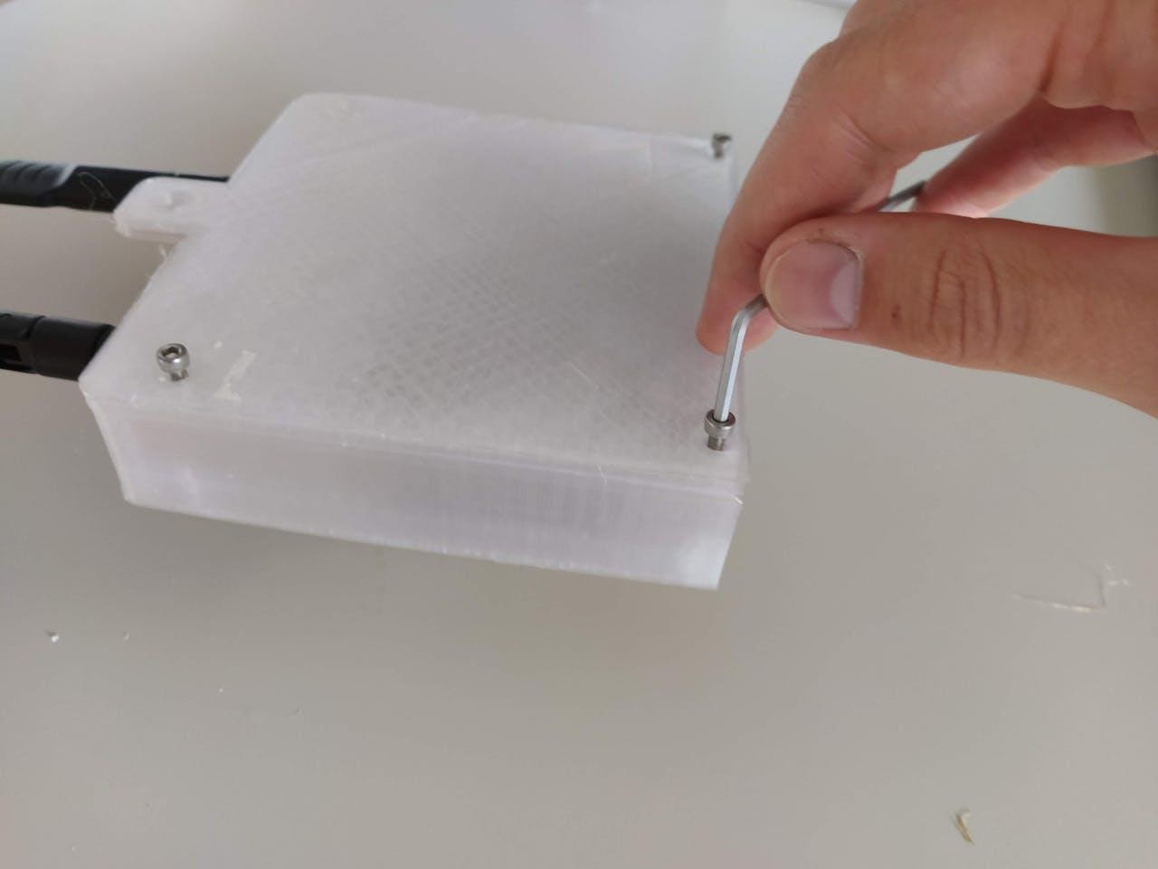 Теперь нужно, воспользовавшись винтами M3, скрепить верхнюю и нижнюю части корпуса. Головки винтов должны быть утоплены в поверхность нижней части корпуса.
