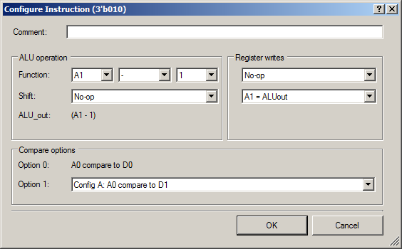 Возвращаемся к инструкции для АЛУ. Кроме того, что уже сказано, там видно, что попутно в регистр A1 снова будет положено содержимое регистра D1, чтобы снова можно было отмерять длительность второй трети импульса.