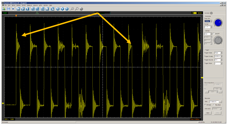 И вот такую картинку наблюдаем на осциллографе: