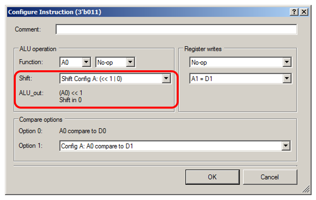 Регистр A0 сдвигается на 1 бит, и результаты помещаются назад в A0. В A1 же снова кладётся содержимое D1, чтобы начать отмерять стартовую треть для следующего бита данных.