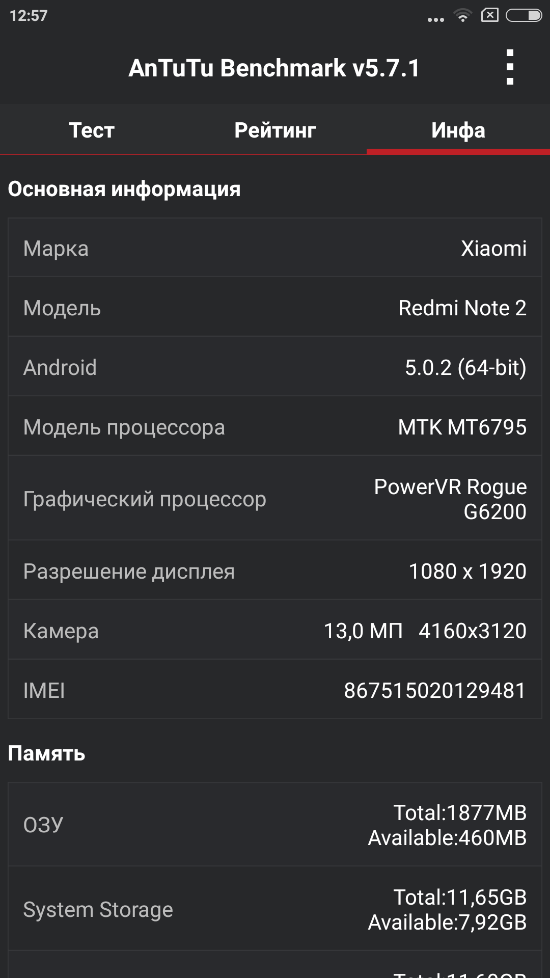 - Флеш-память для хранения данных: 16 ГБ (Redmi Note 2) / 32 ГБ (Redmi Note 2 Prime)
