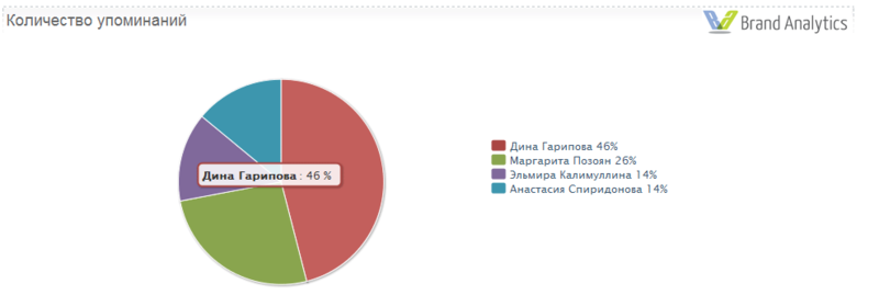 Данные по количеству и тональности упоминаний участниц в Brand Analytics