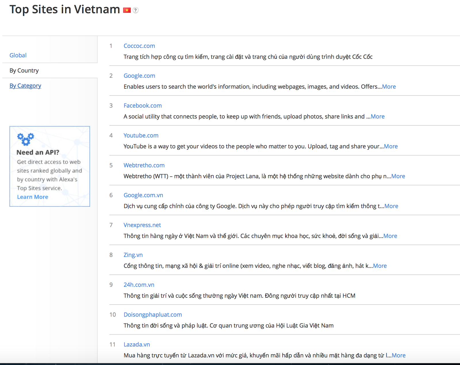 Популярен местный поисковик CocCoc, созданный с участием российских инвесторов и разработчиков. Вьетнамские ИТ-компании довольно активны, и страна богата собственными проектами, в отличие, например, от Малайзии, которую «оккупировали» ресурсы преимущественно из-за границы.