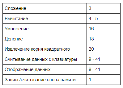 Количество циклов, затрачиваемых на операцию