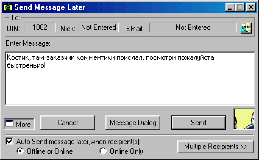 Низкая скорость модемного интернета — это главное ограничение в нашей гипотетической ситуации удаленной работы в 1998 году. На «33,6» реальная скорость передачи сжатых данных составит 3-4 килобайта в секунду: достаточно для веба, почты с нетяжелыми аттачами, общения в ICQ. В 1998 году никто не сидит в интернете «постоянно», в пользовательском сценарии распространено подключение по ночам, когда тариф — дешевый.