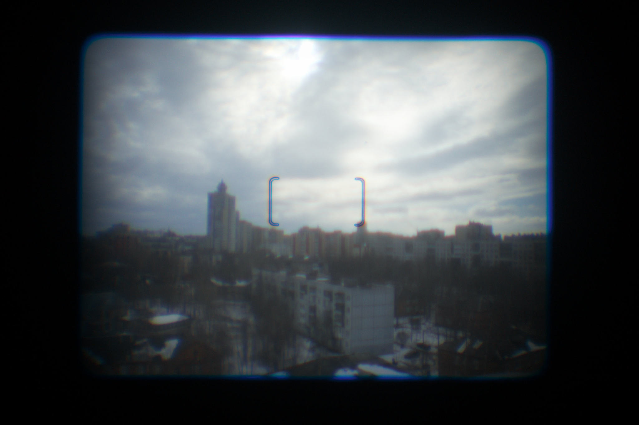 Фотографии сквозь видоискатель сделаны на крайних положениях трансфокатора, в центре видна рамка зоны работы автофокуса.