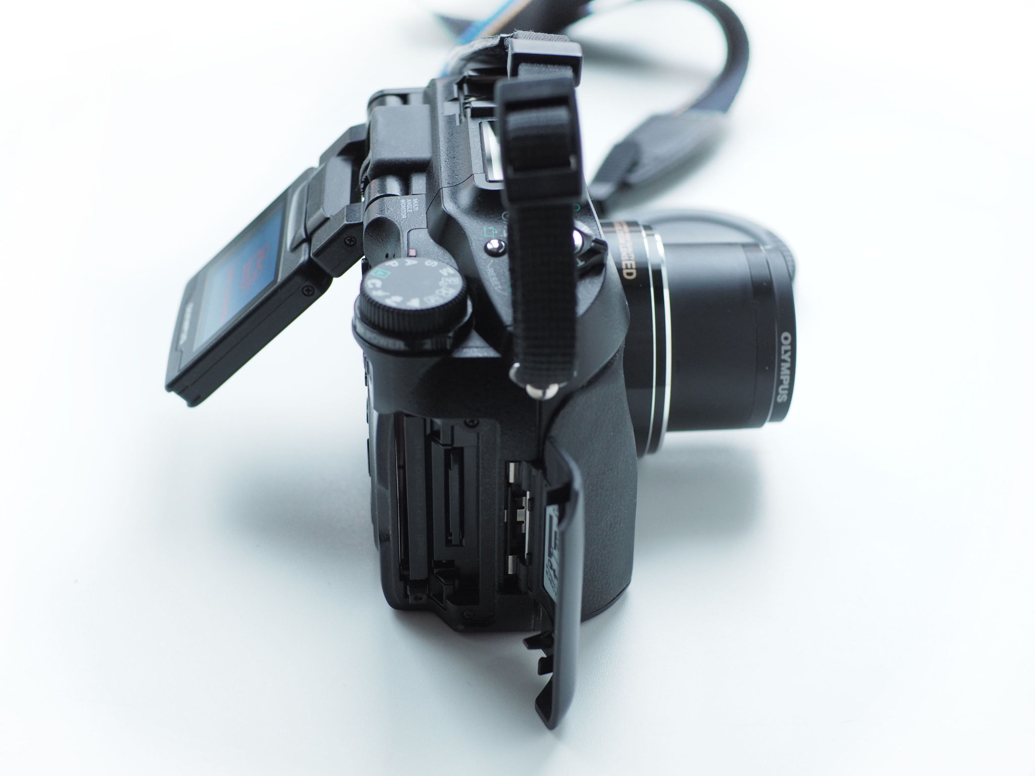 В камере по-взрослому сделаны два слота под карты памяти, фирменный олимпусовский xD (от которого они потом отказались) и под CF. Карты памяти можно оперативно переключать кнопкой на задней стороне.
