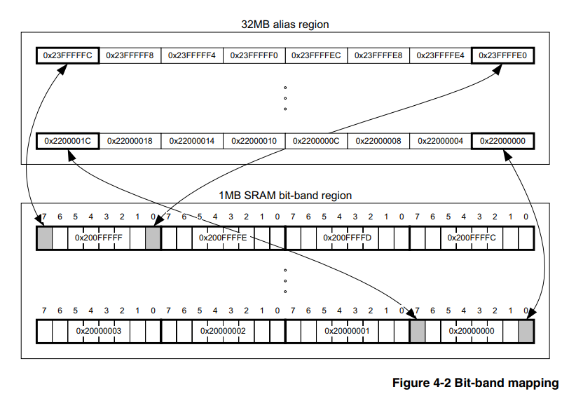Аппаратный bit banding — это особенность самого ядра, поэтому и не зависит от семейства и фирмы производителя микроконтроллеров, главное чтобы ядро было подходящее. В нашем случае пусть это будет Cortex-M3. Следовательно, и информацию по этому вопросу следует искать в официальном документе на само ядро, и такой документ есть, вот он, раздел 4.2 подробно описывает как пользоваться этим инструментом.