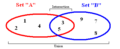 - Объединение комбинирует все элементы из двух разных множеств, превращая их в одно (без дубликатов).