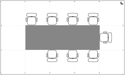 Алгоритм размещения участников конференции в блоке Кресла — тайна покрытая мраком, но к нему можно приспособиться — достаточно несколько раз «поиграть» параметром Шаг. Ну а если примерно — система расставляет стулья начиная с верхней грани стола, учитывая шаг, который по факту является минимальным значением интервала. Т.е. если стулья не вмещаются на одной грани с минимальным интервалом, то лишние стулья уезжают на следующую сторону стола, и так далее.