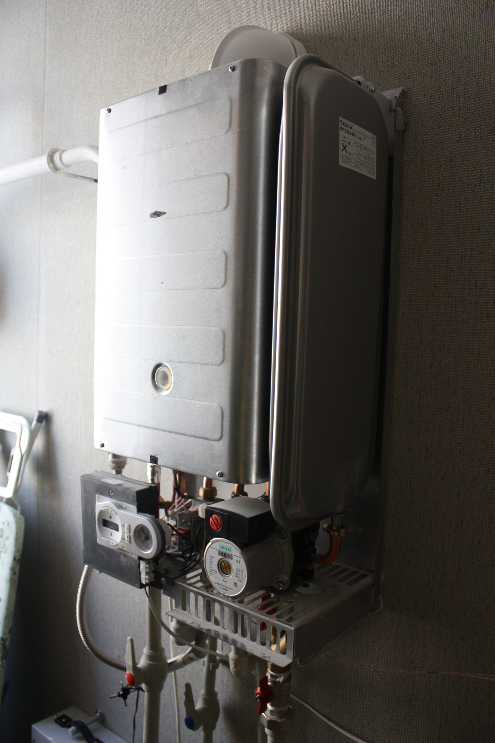 Исследование возможностей построения началось с изучения возможностей котла по внешнему управлению. После снятия кожуха был обнаружен некий разъем, на котором висела перемычка. Изучение документации к котлу вселило надежду, что оно – и есть тот самый разъем для внешнего управления. Тут надо упомянуть особое усердие, с которым готовилась русскоязычная документация на мой итальянский котел Ferroli. В документации есть описание разъемов. Напротив интересующего меня значилась сакральная надпись «Единица среды». Интуиция настойчиво намекала, что это работа переводчиков, незнакомых с предметной областью, надо бы искать англоязычную документацию (уж на английский-то всяко должны были грамотнее перевести). После выкапывания из интернета PDF-ки с английской версией руководства к котлу все прояснилось, напротив того же разъема красовался текст «Room unit». Там же была ма-а-а-ахонькая иконка, которую при определенной доле фантазии можно было принять за логотип OpenTherm. «Это то, что нужно» — подумал я и стал планировать зверские эксперименты над котлом (за окном было -25, так что самое время было спалить электронику отопителя).