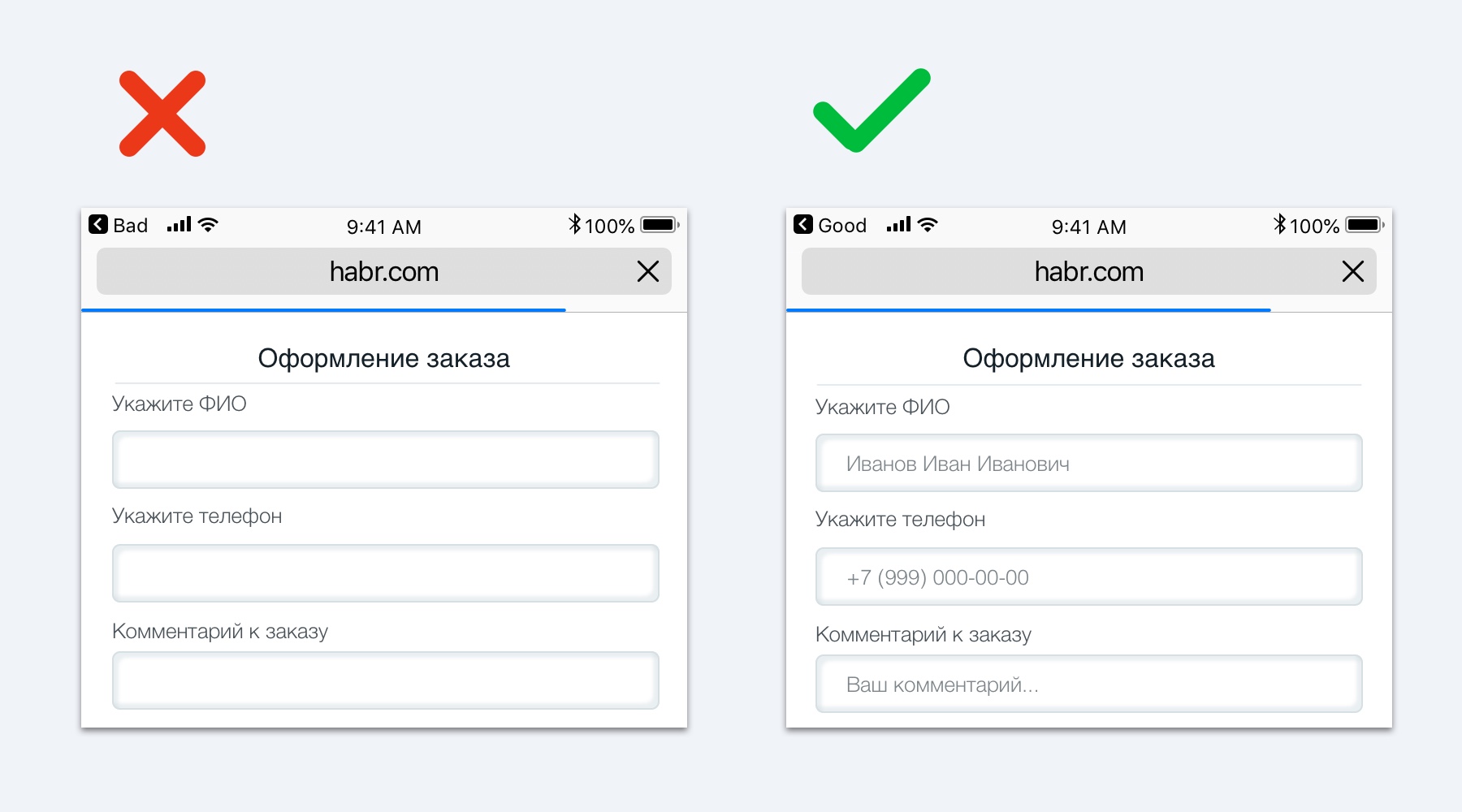 Placeholder – прекрасная возможность показать пользователю, как вводить информацию. Хорошим примером является ввод телефона. Нужно ли пользователю вводить код страны? Или код города?