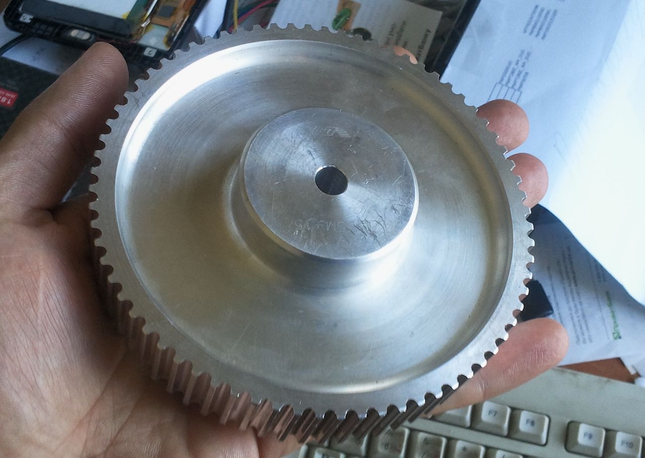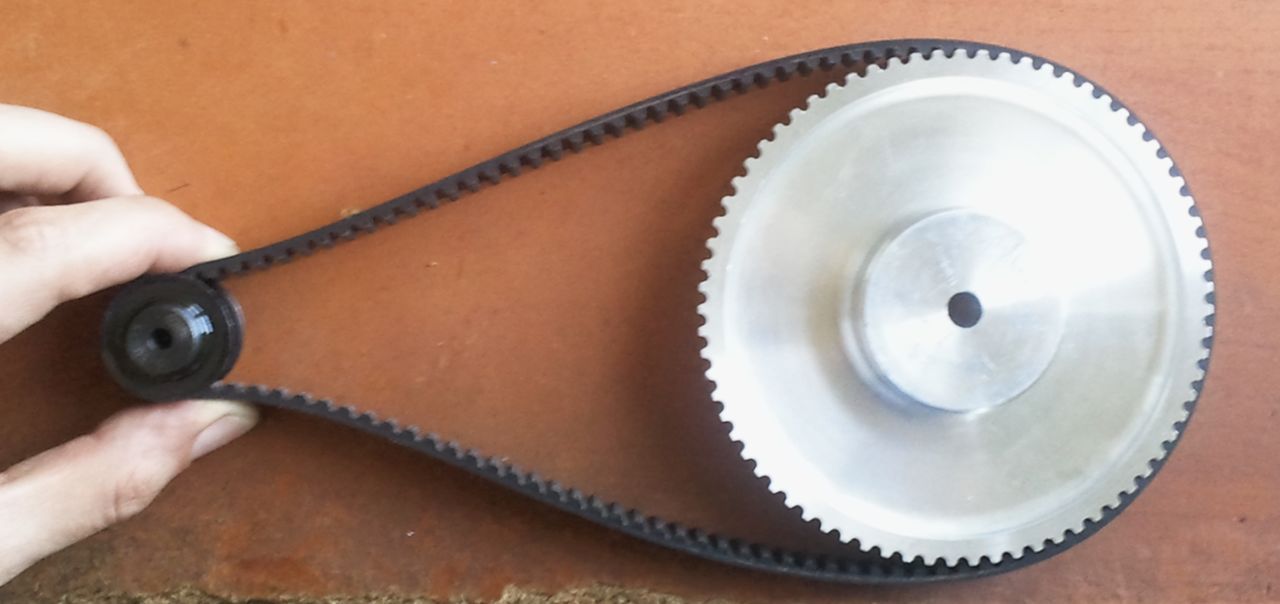 Этот «костыль» появился в процессе доводки конструкции. У двигателя хватает момента, чтобы деформировалась несущая пластина, при этом ослабевает натяжение ремня, и он проскакивает. Решили проблему «в лоб» теперь все нормально.