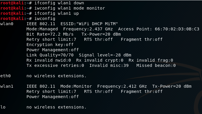 Переводим свободный беспроводной интерфейс в режим мониторинга: