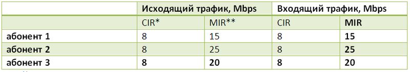 *) CIR – гарантированная полоса пропускания