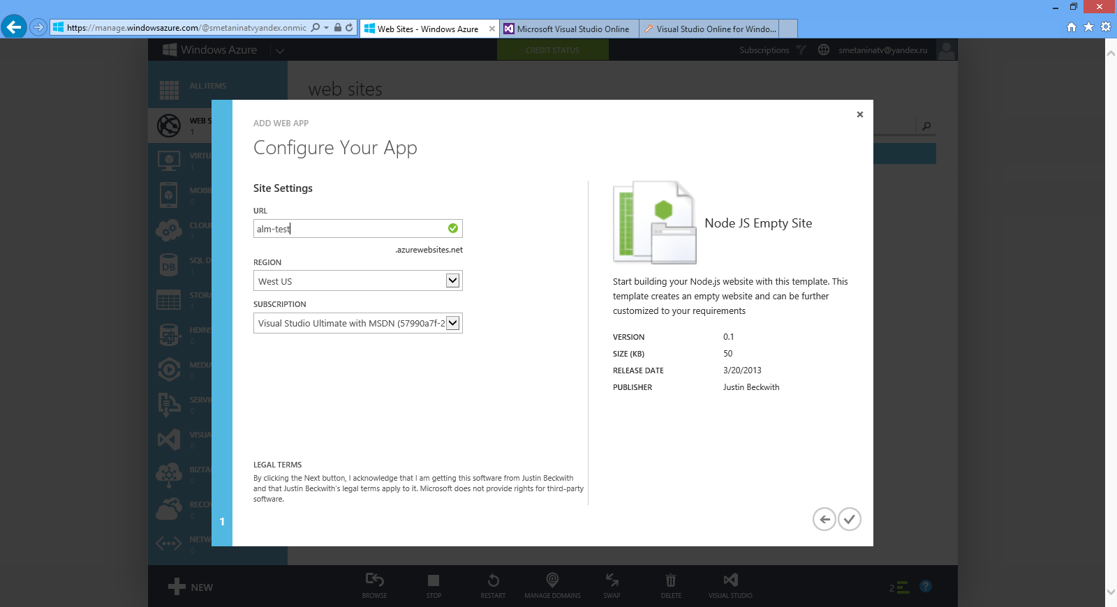 Процедура создания сайта в Windows Azure занимает не более 5 минут.