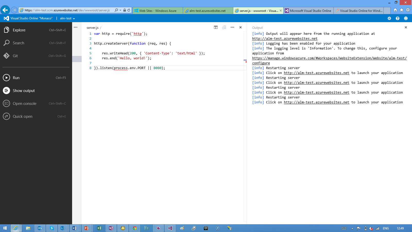 Нажав на ссылку, вы перейдете в Visula Studio Online и сможете создавать и редактировать свой код прямо в браузере. Всё это с поддержкой Intelli Sence, автосохранением, возможностью компиляции и запуска.