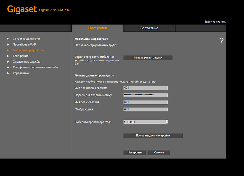 На этом базовую настройку системы Gigaset N720 Pro можно считать законченной.