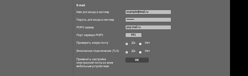 Все настройки выполняются в интерфейсе диспетчера Gigaset N720 DM PRO. В настройках соответствующего аккаунта телефона необходимо добавить параметры получения электронной почты: адрес POP3-сервера, логин и пароль. А в общем разделе Мобильные устройства можно указать частоту проверки ящика на предмет новых сообщений.